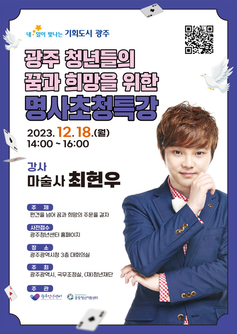 특강 참여를 희망하는 청년은 광주청년센터 홈페이지(www.gjyouthcenter.kr)에 사전접수하면 된다. 사전 접수자 중 추첨을 통해 최현우 마술사의 친필사인 책자를 제공한다.