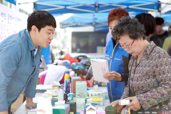 | ▲자생의료재단 임직원들이 희망드림 자선 바자회에서 기부 물품을 판매하고 있다. |