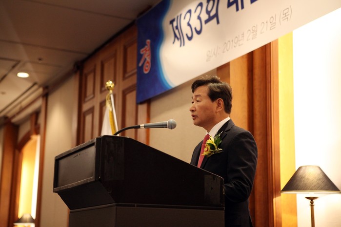 | ▲ 제17대 대한한방병원협회 회장에 선임된 신준식 자생의료재단 명예이사장이 인사말을 하고 있다. |