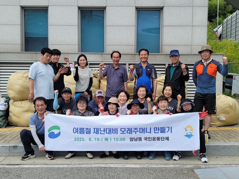 이날 제작된 모래주머니는 암남동 주민센터에 비축하여 향후 자연재해 발생 시 실질적인 재난 대응 물품으로 활용될 예정이다.