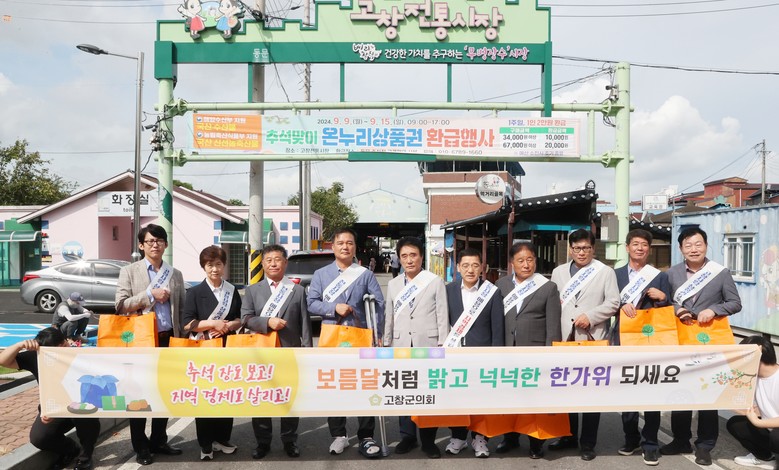 이날 고창군의회 의원들은 제수용품과 농·축산물 등을 구매하면서 상인들에게 덕담을 건네고, 즐거운 추석 명절이 되도록 훈훈한 정을 나눴다.