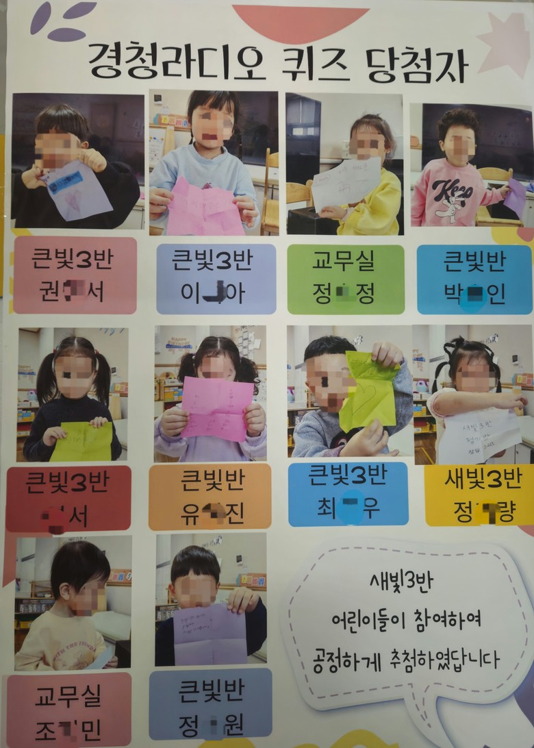 첫 ‘경청 라디오’는 3월 19일 막내 새빛반(3)세부터 시작되었다. 새빛 1반은 3월 우리 친구들이 유치원에서 만났던 모든분에게 감사 마음을 전하는 내용과 학부모님이 아이들의 첫 유치원 생활을 응원하는 내용으로 채웠고 새빛2반은(3. 21) 자신을 소개하는 시간과 큰빛반 형님이 동생들에게 들려주는 응원 편지, 솔빛반 형님의 노래 선물로 서로 우애를 다지는 시간이 되었다. 새빛3반(3. 26)은 엄마,아빠의 사랑이 담긴 목소리로 동화구연을 들려 주고 마지막에 경청 퀴즈로 창현유치원 아이들 모두가 함께 즐겁게 참여하였고 새빛4반(3. 28.)은 3월 한달 간 창현유치원 막내로 잘 적응한 새빛반 친구들에게 원장선생님의 응원 편지가 낭독과 새빛4반 친구들이 함께 만든 반 노래를 직접 불러서 소개하는 시간을 가졌다.