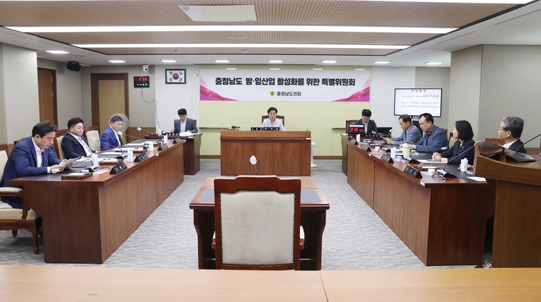 밤‧임산업특위는 대한민국의 대표 임산물이자 전국 대비 약 60%를 차지해 전국 1위를 차지하고 있는 충남도 밤 산업의 활성화를 위해 구성됐으며, 2025년 12월 31일까지 운영된다. 위원으로는 윤기형(논산1·국민의힘), 김민수(비례·더불어민주당), 신순옥(비례·국민의힘), 박정수(천안9·국민의힘), 신영호(서천2·국민의힘), 고광철(공주1·국민의힘), 방한일(예산1·국민의힘) 의원 등 총 9명이다.