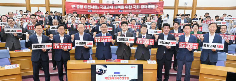 강대식 국회의원은 “새로운 대구 미래 100년 도약의 전기(轉機)를 마련할 대구 군 공항 이전사업은 국가 안보와 국토 균형 발전이라는 대의 속에서 정부가 책임 있게 주도해 나가야 한다”며, “이재명 대통령도 여러 차례 약속한 바가 있는 만큼, 국정과제로 채택되어 안정적인 재원 확보와 신속한 사업 추진을 해야 한다”고 말했다.