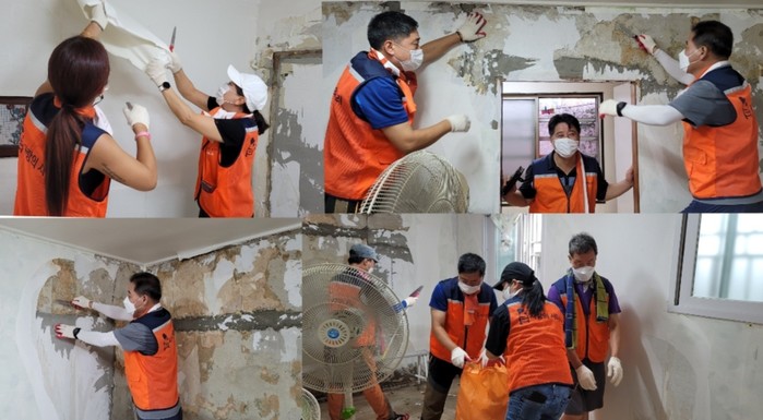 [대전=세계타임즈 이채봉 기자] 9천명 SNS 대전시 봉사단체 사랑의 사다리 밴드(리더 이정제)는 지난20일 오전8시~오후2시, 동구 대동 수해지역에서 도배, 통닭, 미용봉사로 우리 사회의 따뜻한 사랑을 전달하였다.