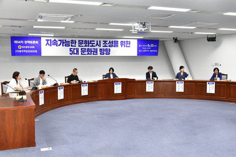 정책토론회는 이귀순 시의원이 좌장을 맡고, 정성구 대표(UCL도시콘텐츠연구소), 김광욱 실장(광주연구원 포용도시연구실)이 발제를 맡았다. 토론에는 오은영 대표(포럼 문화와 도시), 김형미 의원(서구의회), 윤영일 의원(광산구의회), 신신하 정책관(광주광역시 문화정책관) 등이 토론자로 참여했다.