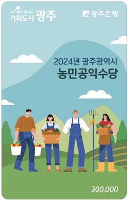 지급금액은 농가당 연 60만원으로 광주지역에서 사용할 수 있는 선불카드(30만원권 2매)로 지급된다.