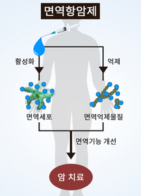 반면 면역항암제는 기존 항암제처럼 약물이 암세포를 직접 공격하는 대신, 환자의 왜곡된 면역체계를 복원해 면역세포가 암 세포를 공격하게 하는 방식이다. 암세포는 끊임없이 자신을 변화시키면서 체내 면역체계가 자신을 알아보지 못하게 면역세포를 왜곡하고, 이로 인해 면역세포가 암을 공격하지 못하는 상황이 발생한다.