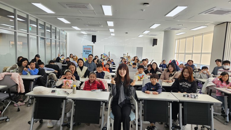 | ▲ 세종시교육청평생교육원 배움실에서 열린‘작가와의 만남’‘신유미 작가’와 참여한 가족들의 모습 |