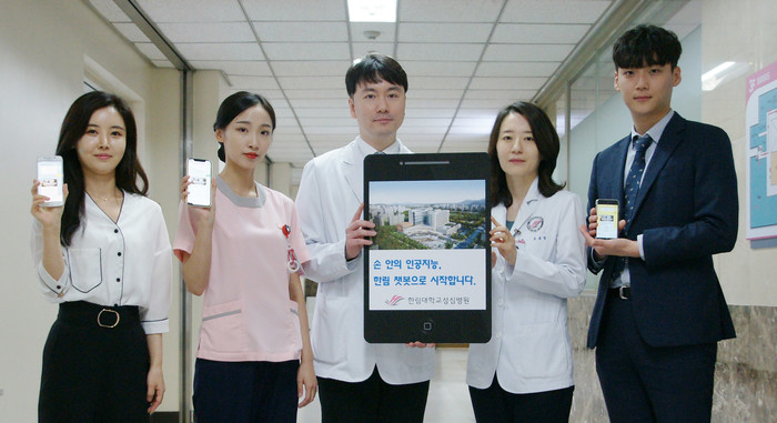 한림대학교성심병원 한림스마트봇을 이용하면 자연어처리 기술로 학습한 알고리즘을 활용해 병원이용 전반부터 진료시간표, 진료과 정보, 교수진 소개 등을 확인하거나 검색어로 찾을 수 있다. 또한 교수의 학회참석 및 휴가 등의 변동사항이 실시간 반영된 진료정보를 볼 수 있어 차별화된 챗봇의 기능을 제공한다.