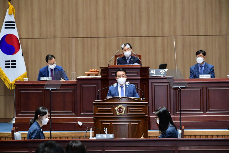 정무창 의장 당선자는 “제9대 전반기 의장의 중책을 맡겨 주신 동료의원 여러분께 깊은 감사와 경의를 표했다. 시민의 삶과 생활을 우선에 두는 ∆민생의회, ∆시민과 소통하는 의회, ∆의원 간 협업, ∆청렴한 의회, ∆연구하며 일하는 의회 상을 제시했다. 의회의 높아진 위상과 권한만큼 시민의 다양한 요구를 귀담아 듣는 품격 있고 능력 있는 의회를 운영하겠다”고 당선 소감을 밝혔다.