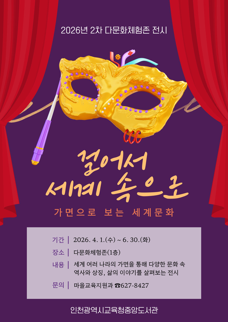 전시 관람은 평일(휴관일 제외) 오전 9시부터 오후 6시까지, 주말은 오전 9시부터 오후 5시까지 가능하며, 자세한 사항은 중앙도서관 누리집을 확인하거나 마을교육지원과(☎032-627-8427)로 문의하면 된다.