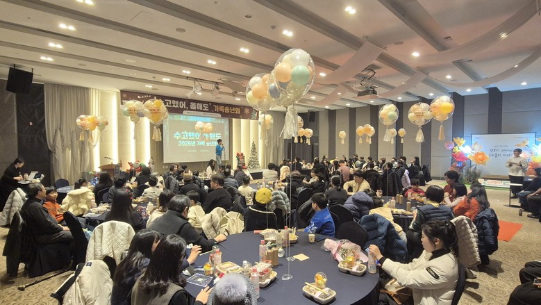 [화성시 세계타임즈=송민수 기자] 화성시아동청소년정신건강복지센터는 12월 6일(토) 푸르미르호텔 사파이어홀에서 센터 등록 회원과 가족, 자원봉사자, 교육 강사 등 100여 명이 참석한 가운데 2025년 가족 송년회 ‘수고했어, 올해도’를 성황리에 개최했다.