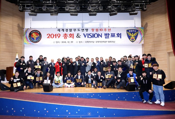 세계경찰무도연맹은 창립 10주년을 맞아 2019총회 &VISION 발표회를 내외빈 및 회원 300여명이 참석한 가운데 2018년 12월 29일 국회의사당 국회의원회관 대회의실에서 개최됐다.
