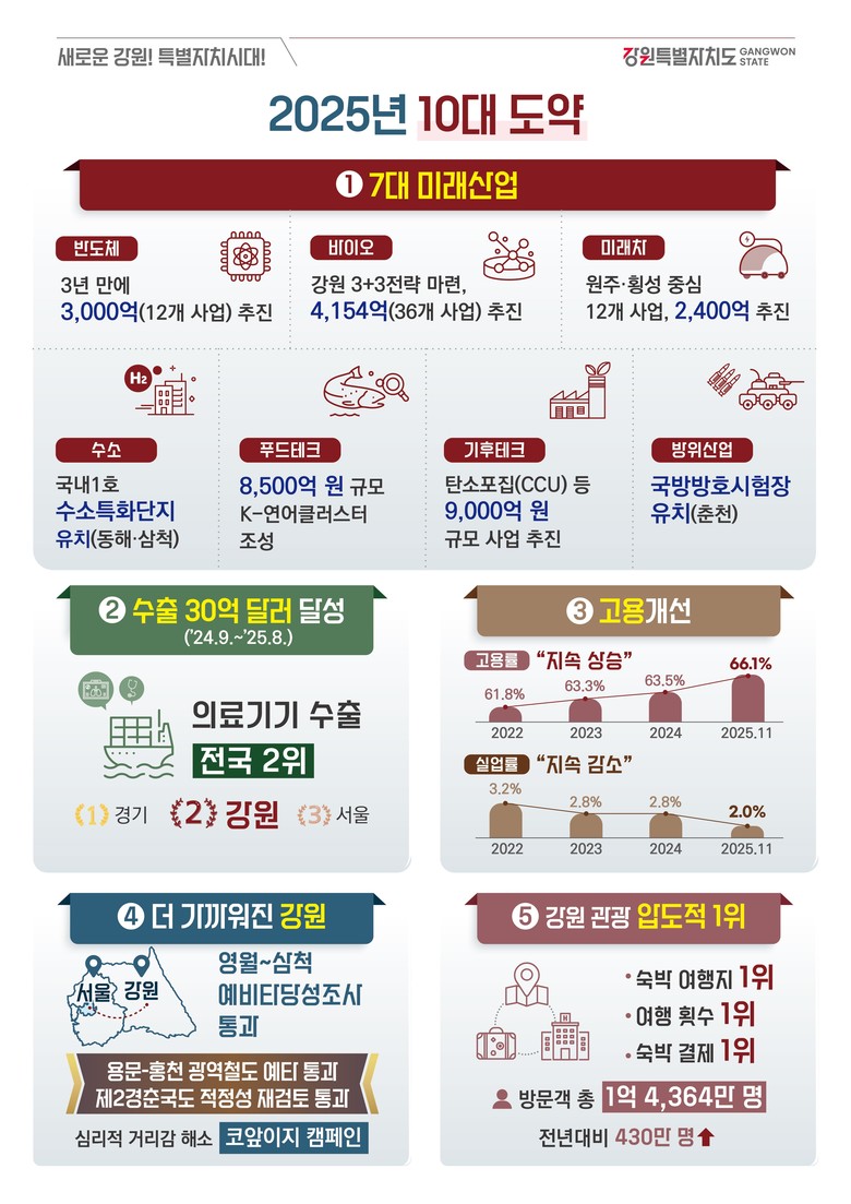 특히 민선 8기 강원도는 특별자치시대 출범과 함께 산업·관광·민생 등 도정 전반에서 변화를 추진해 왔으며, 그 성과가 점차 구체화되고 있다.