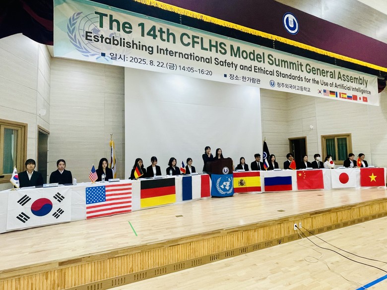 [충북 세계타임즈=이현진 기자] 청주외국어고등학교(교장 정은영)는 22일(금), 교내 대표 프로그램인 제14회 모의정상회담을 성공적으로 개최하였다.