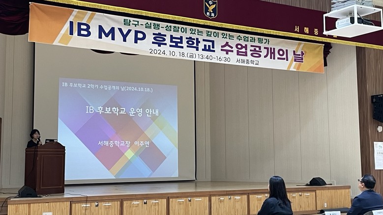 | ▲ 서해중 IB 수업공개의날 (학교장 IB학교운영 발표) |