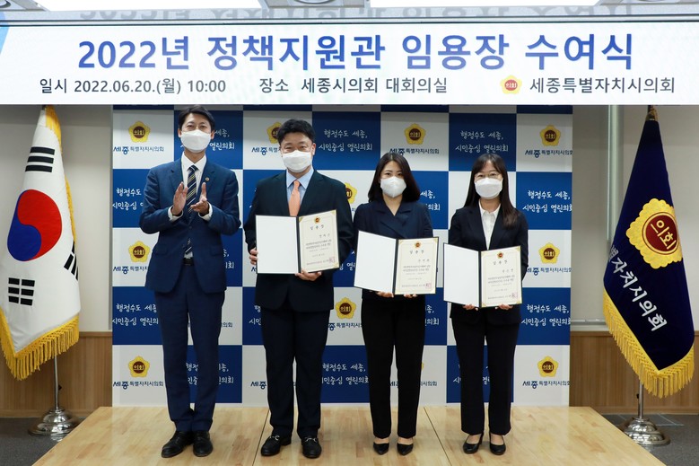 [세계타임즈=세종 이채봉 기자] 세종특별자치시의회(의장 이태환)는 20일 신규 채용된 정책지원관 3명에게 임용장을 수여했다.
