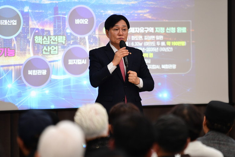 박용철 군수는 생활 기반시설 확충을 비롯해 농업·관광 경쟁력 강화, 정주 여건 개선 등 군민의 일상과 밀접한 정책들을 중심으로 설명을 이어갔다. 아울러 강화 경제자유구역, 평화경제특구 등 현재 추진 중인 대규모 국가사업에 대해서도 추진 배경과 기대 효과를 주민 눈높이에 맞춰 설명하며 높은 이해도와 몰입도를 이끌었다.