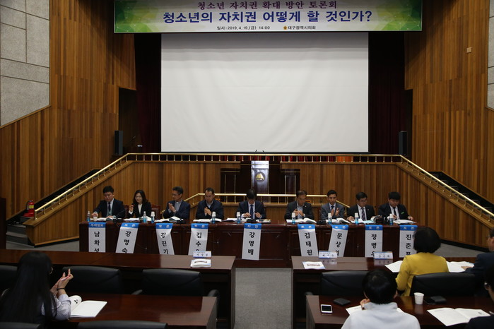 [대구=세계타임즈 한성국 기자] 대구광역시의회(배지숙 의장)는 4월 19일(금) 오후 2시 대구문화예술회관 달구벌홀에서 청소년정책 수립과정에 청소년의 주도적 참여를 보장하고 그 실효성을 높이기 위해 청소년의 자치권 확대 방안을 모색 하고자 토론회를 개최한다.