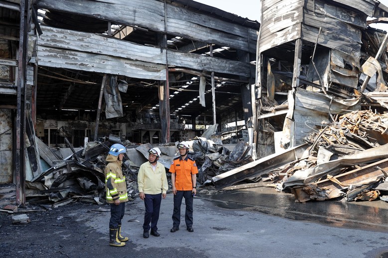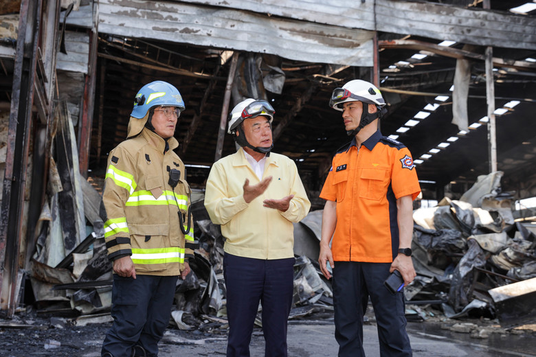 [대구 세계타임즈=한성국 기자] 대구시의회 이만규 의장은 6월 16일(금) 오후, 지난 15일 발생한 서구 중리동 공장화재 현장을 방문하여 피해 상황을 파악하고 수습 대책을 논의했다. 이만규 의장은 사고 수습에 노고가 많은 소방공무원들을 격려하는 한편, 철저한 원인 규명과 개선 대책 마련을 당부했다.