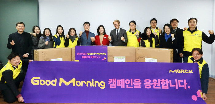 작년 11월부터 진행된 ‘굿모닝 캠페인’은 우리 사회에서 소외된 독거 노인에게 지난 밤 안부를 물으며 손을 내민다는 의미를 담고 있으며, 한국머크의 의학정보 디지털 채널인 사이트에 방문하는 의료진과 머크 바이오파마 임직원이 함께 참여한 사회공헌 활동이다.