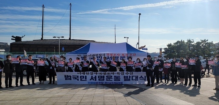 여수갑지역위의 서명운동은 주 중에는 1 인 피켓시위와 함께 출근시간 권역별로 진행한 뒤, 토요일과 일요일 이순신광장에서 운영된다.세계타임즈 / 양준호 기자 news@thesegye.com