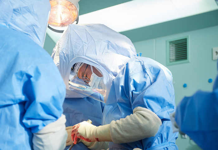 | ▲정형외과 전영수 교수가 고관절 치환술을 진행하고 있다. |