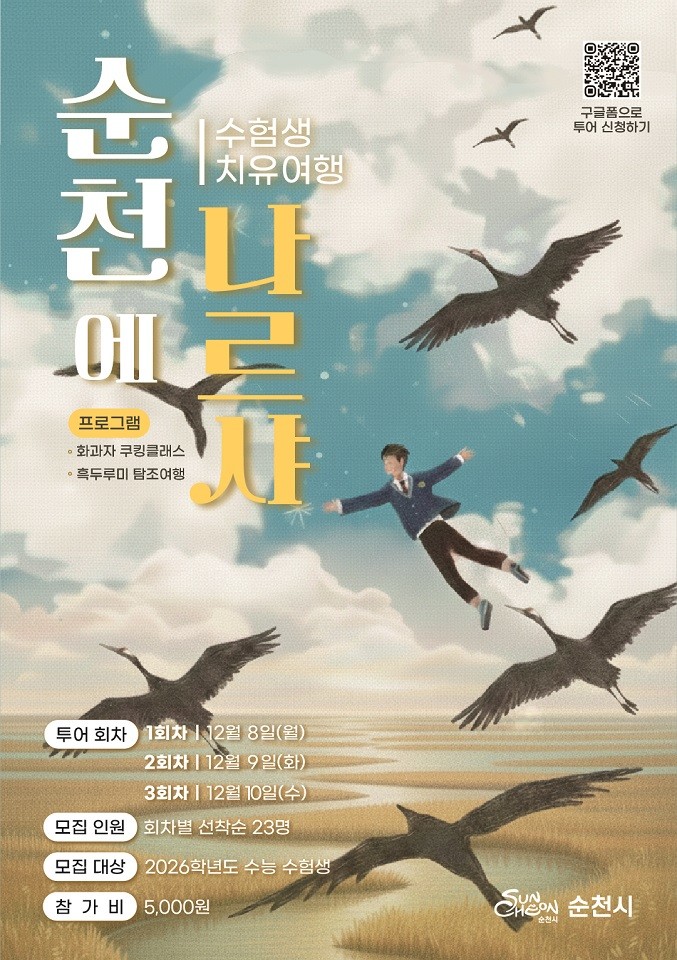 시 관계자는 “수능을 마친 청소년들이 잠시 멈춰 숨을 고르고, 자연 속에서 회복의 시간을 갖길 바란다”며, “행운의 새로 불리는 흑두루미와의 만남이 새로운 일상과 미래에 따뜻한 응원과 행운으로 이어지길 바란다”고 말했다.