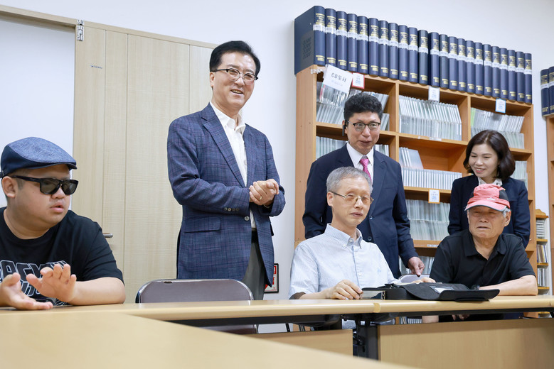 대전시의회 조원휘 의장과 황경아 부의장, 이금선 교육위원장은 22일 대전점자도서관(관장 김영호)을 방문해 「대전이음」 점자 의정소식지 1호와 음성CD를 전달했다.