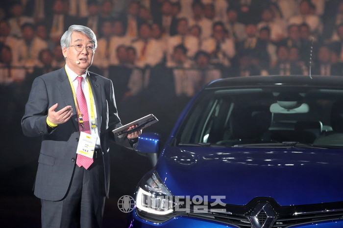 박동훈 르노삼성자동차 사장이 지난 19일 고양 킨텍스에서 열린 '2017 네트워크 컨벤션' 행사를 진행하고 있다.