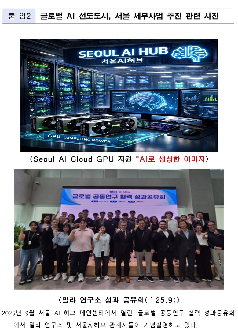 최근 대규모 자본을 앞세운 글로벌 빅테크 중심의 AI 경쟁 구도 속에서, 저비용・고효율 AI 모델이 확산되며 산업 구조가 재편되고 있는 점도 이러한 전략에 힘을 실었다. 서울시는 초거대 모델 경쟁보다는, 산업과 도시 현장에서 실제로 작동하는 AI 전환 모델을 구축하는 데 정책 역량을 집중하고 있다고 설명했다.