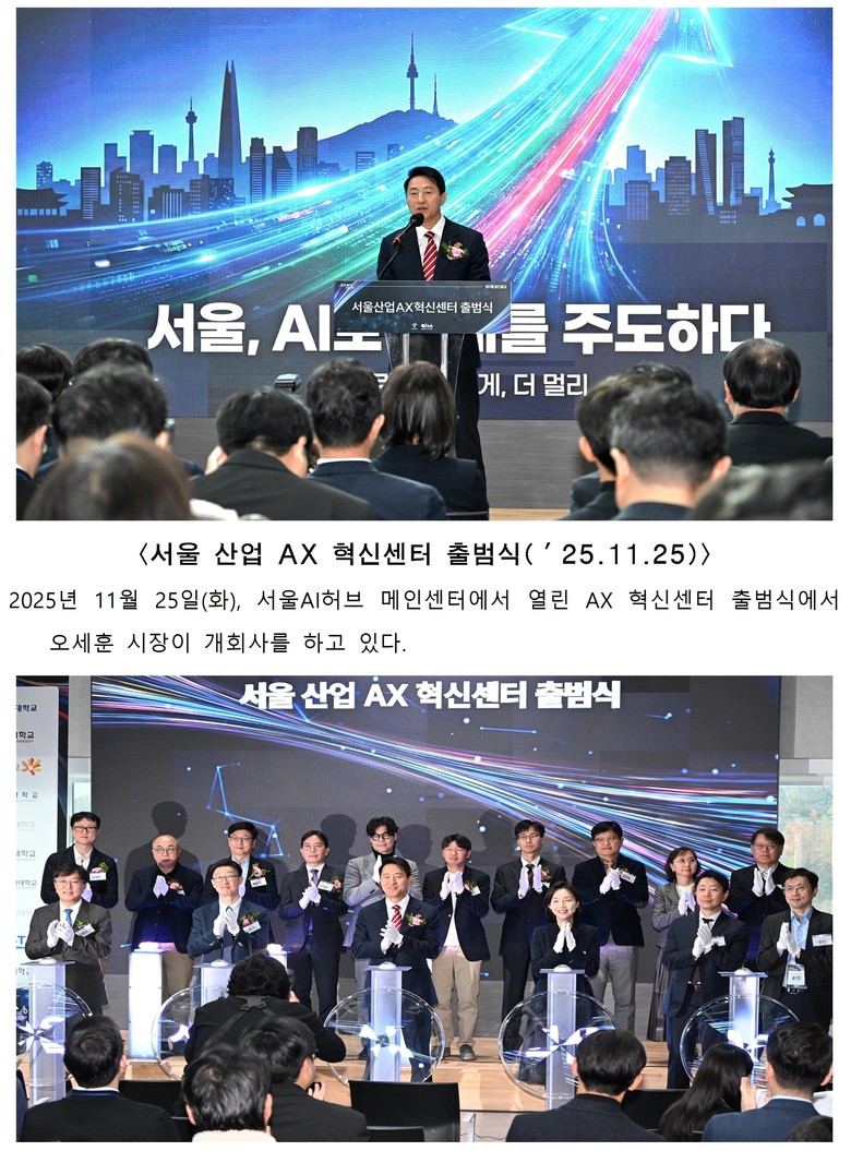같은 날 함께 출범한 ‘서울 AI 혁신협의회’는 서울대·연세대·고려대·한양대·KAIST 등 10개 AI(융합)대학원이 참여하는 산학협력 거버넌스로, 산업현장 수요에 대응한 연구 자문, 실증 연계, 공동 연구 등을 통해 산업 AX 전환을 뒷받침하는 전략 자문 기구 역할을 수행한다.