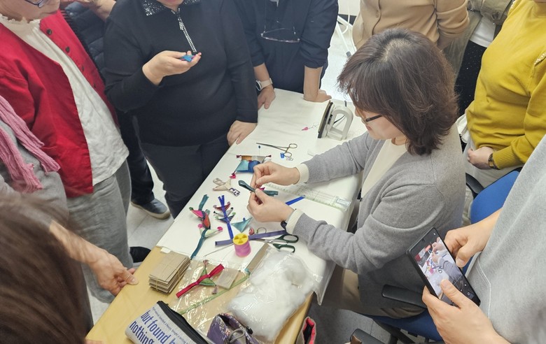 | ▲ 수원시농업기술센터에서 규방공예 교육에 참여한 시민들이 실습하고 있다. |
