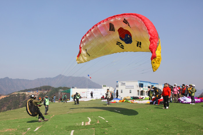 23∼25일 충북 단양 가곡면 두산활공장에서는 중국과 대만, 말레이시아 등지에서 온 외국인 40명과 국내 동호인 60여명이 참가한 가운데 국제 패러글라이딩 대회가 열렸다.