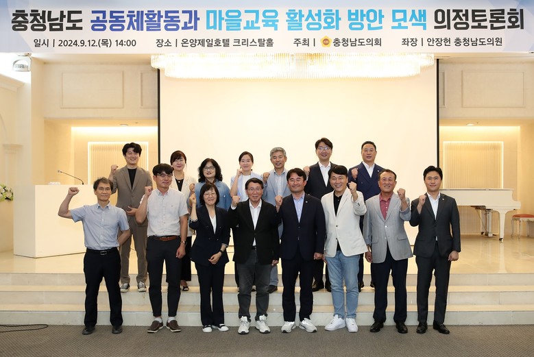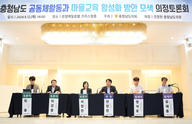 [충남 세계타임즈=백택기 기자] 충남도의회는 12일 아산시 온양제일호텔 크리스탈홀에서 ‘공동체활동과 마을교육 활성화 방안 모색’을 주제로 의정토론회를 개최했다.