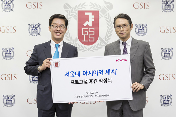 [세계타임즈 이영진 기자] 한국 토요타 자동차는 서울대학교 국제대학원과 ‘아시아와 세계’(Asia and the World)’의 강좌 후원 협약식을 체결했다고 7일 밝혔다. 한국 토요타 자동차는 이번 후원을 통해 2020년까지 매년 7천만원씩 총 2억1천만원을 ‘아시아와 세계’ 프로그램에 지원할 예정이다.
