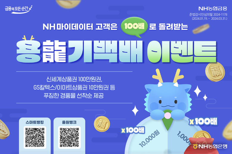 이벤트 관련 자세한 사항은 NH올원뱅크 및 NH스마트뱅킹에서 확인할 수 있으며, 가까운 농협은행 영업점이나 고객행복센터로 문의하면 된다.