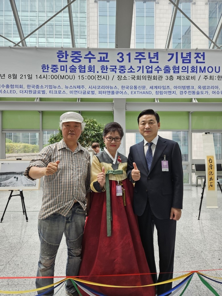 한중수교 31주년 기념 전시회 개막식에 앞서 우리나라의 현실에서 미술 단체들이 경제적 어려움에 직면하고 있는바 한중미술협회와 한국중소기업수출협의회가 상호 협력하는 MOU를 체결하였고, 앞으로 각 회원사들이 한중미술협회 회원들의 후원을 맡기로 하여 미술계와 경제계의 모범적인 협업 사례가 될 전망이다.