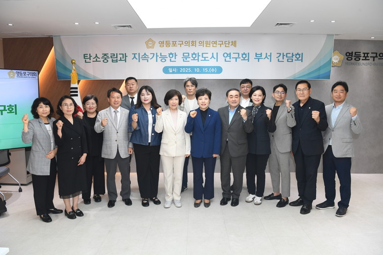 [영등포구 세계타임즈=이장성 기자] 영등포구의회 의원연구단체 ‘탄소 중립과 지속 가능한 문화도시 연구회’(대표 이순우 의원)는 15일 영등포구의회 다목적회의실에서 관련 부서와 간담회를 열고 탄소중립과 문화도시 조성을 위한 실천 방안을 논의했다.