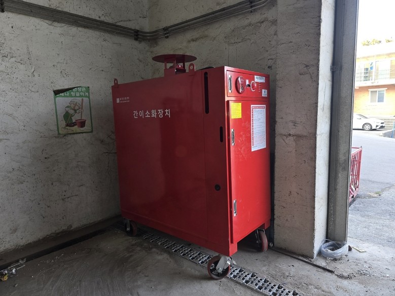 이동식 소화설비는 기존 고정식 소화전과 달리 화재 발생 지점까지 신속하게 이동해 직접 분사가 가능하며, 강력한 수압과 분사 거리로 소각장 내부 대형 폐기물 저장조 등 접근이 어려운 장소의 화재를 진압하는 데 효과적이다.