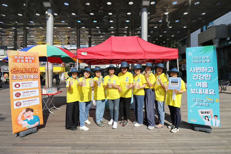 지난 8월 2일에 이어 16일 부천지부 봉사자 10명이 부천역 광장에서 건강한 여름나기를 기원하는 인사말을 건네며 오후 3시부터 약 2시간 동안 생수 나눔 봉사를 진행했다. 이틀간 지나가는 시민들에게 생수 500개와 결명자차 300잔을 나누며 온열질환 예방을 위한 건강 수칙을 안내했다.