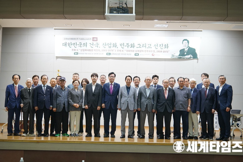 11일 오후 서울 동작구 김영삼도서관에서 열린 '김영삼'대통령10주기 기념 세미나시리즈 ‘대한민국의 건국, 산업화, 민주화 그리고 선진화’ 2차 세미나에서 참석자들이 기념촬영을 하고 있다.