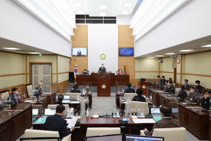 박찬주 의장은 개회사를 통해 이번 정례회의 중요성을 강조하며, “침체된 지역사회의 회복과 도약을 위해 보다 냉철한 자세로 최선을 다해줄 것”을 의원들에게 당부하기도 했다.
