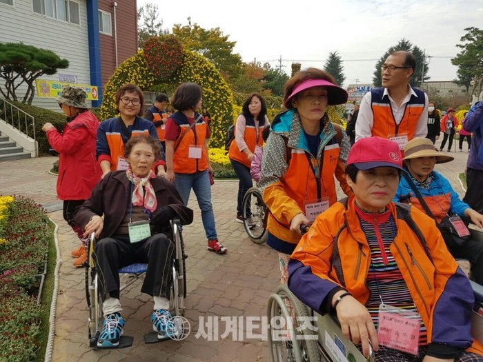 이날 봉사에는 유희자 나눔봉사단장을 비롯해서 회원 13명이 버스 6대로 출발한 익산 송광사와 익산 중앙체육공원 국화축제 행사장까지 동행하면서 휠체어 밀어주기, 말벗봉사 등을 하면서 장애인분들과 좋은 시간을 보냈다.