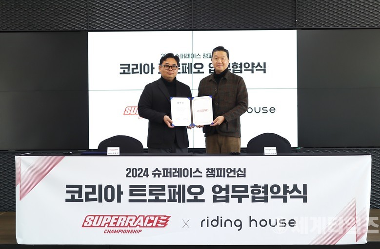 슈퍼레이스와 라이딩하우스가 경기도 용인에 위치한 에버랜드 스피드웨이에서 협약식을 진행했다. 양 사의 협약을 통해 라이딩 하우스가 주최하는 ‘코리아 트로페오’ 바이크 대회를 내년 시즌 슈퍼레이스에서 만나볼 수 있게 됐다.