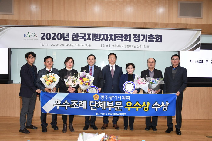 [광주=세계타임즈 손권일 기자] 광주광역시의회(의장 김동찬)는 14일, 서울대학교 행정대학원에서 열린 한국지방자치학회 주관 「제16회 지방의회 우수조례」 시상식에서 단체부문 ‘우수상’, 개인부문 ‘우수상’과 ‘장려상’을 수상했다.