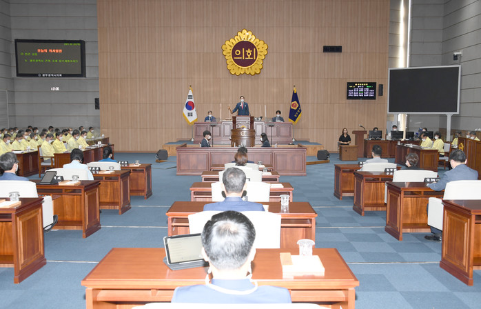 [광주=세계타임즈 손권일 기자] 광주광역시의회(의장 김용집)는 7월 22일 오전 10시, 시의회 본회의장에서 제300회 임시회를 개회하여 원포인트 회의를 진행했다.