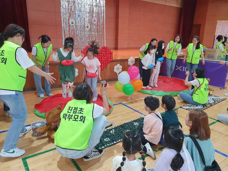 학부모회는 사전에 ‘JJ 놀이터’를 운영할 학부모를 모집하고 회의를 통해 운영 방향과 종목을 정한 뒤 휴업일을 이용해 놀이터를 만들었다. 그리고 5월 2일과 3일 이틀 동안 강당에서 ‘JJ 놀이터’를 열어 ▲농구 에어바운스 ▲물병 세우기 ▲다람쥐 ▲색판 뒤집기 ▲쉐키쉐키 ▲밴딩 자이언트 컵쌓기 ▲고깔댄스의 놀이 체험과 ▲포토존을 운영하여 유치원생부터 1~6학년 전교생 모두에게 즐거운 시간을 선물해 주었다. 그리고 어린이날을 앞둔 5월 3일 등굣길에는 즐거운 음악과 함께 현수막, 동물 인형탈 등을 준비하여 어린이날 기념 선물을 나눠주며 아침맞이를 해주었다.