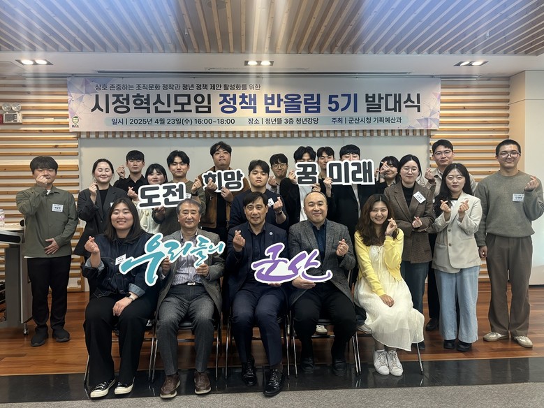 ‘정책 반올림’은 임용 5년 차 이하 8~9급 공무원들이 자율적으로 참여해, 실무 현장의 문제의식을 바탕으로 참신한 정책을 제안하고, 공직 내부의 소통과 존중 문화를 조성하고자 운영되는 군산시의 시정 혁신 모임이다.